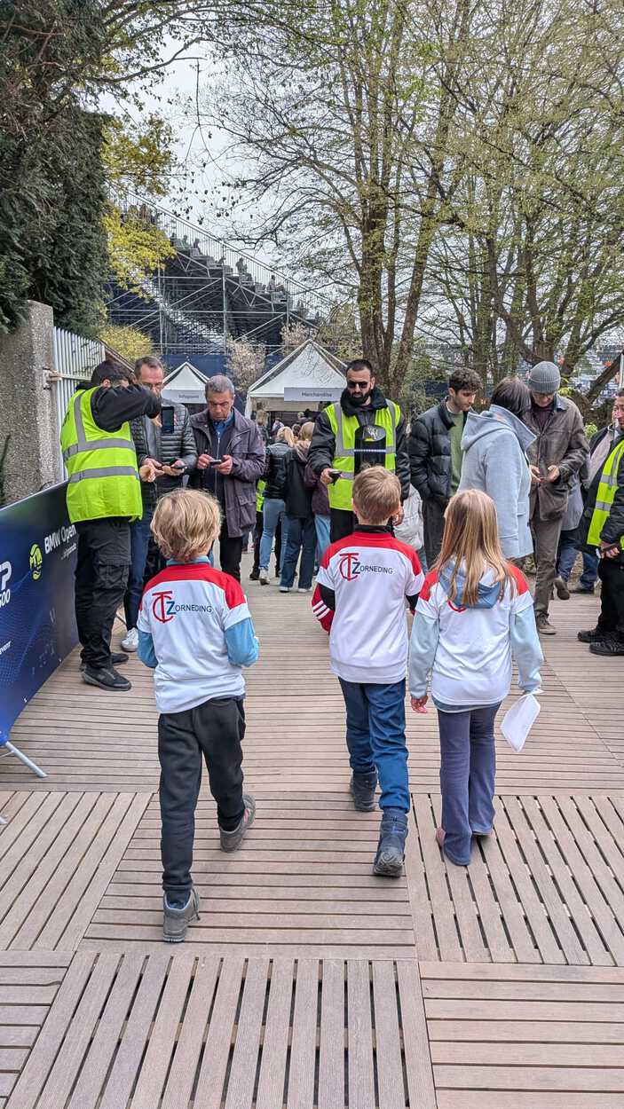 Letzten Montag machte sich der Tennisclub Zorneding erneut auf den Weg zum beliebten Kids Day der BMW Open in München – einem hochklassigen Turnier der ATP-500-Kategorie. Mit insgesamt 35 Teilnehmerinnen und Teilnehmern ging es gemeinsam in mehreren Autos von Zorneding in den NOrden Münchens, wo uns auf der Anlage des MTTC Iphitos eine beeindruckende Tennisatmosphäre erwartete.